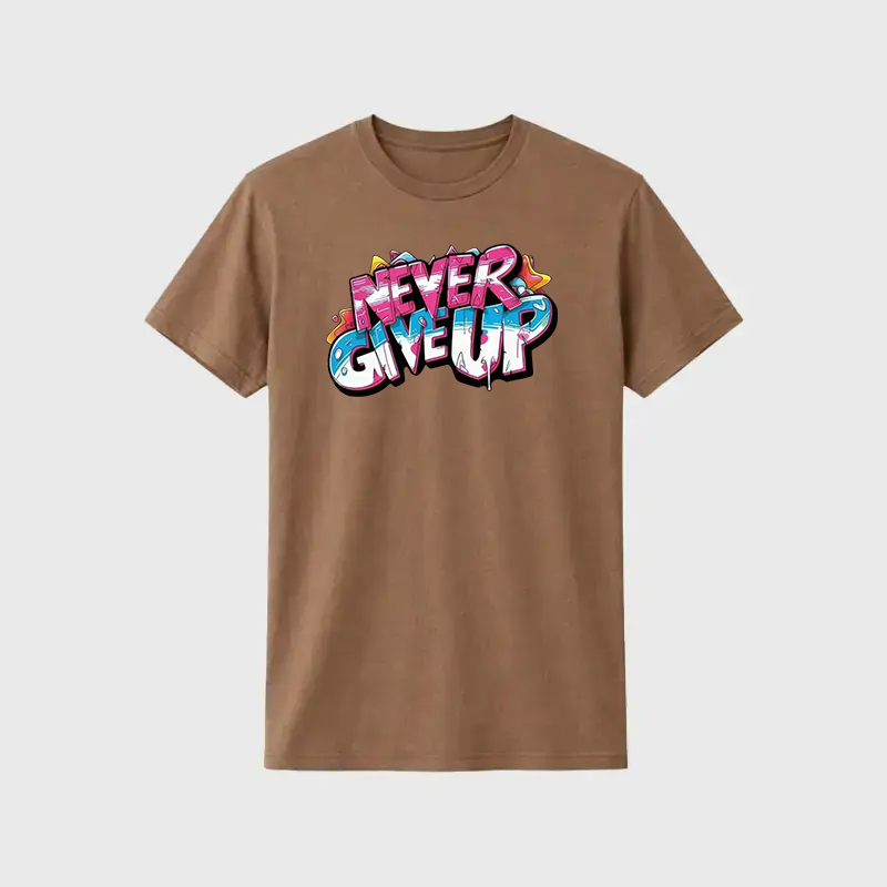Never Give Up Printed Brown T shirt